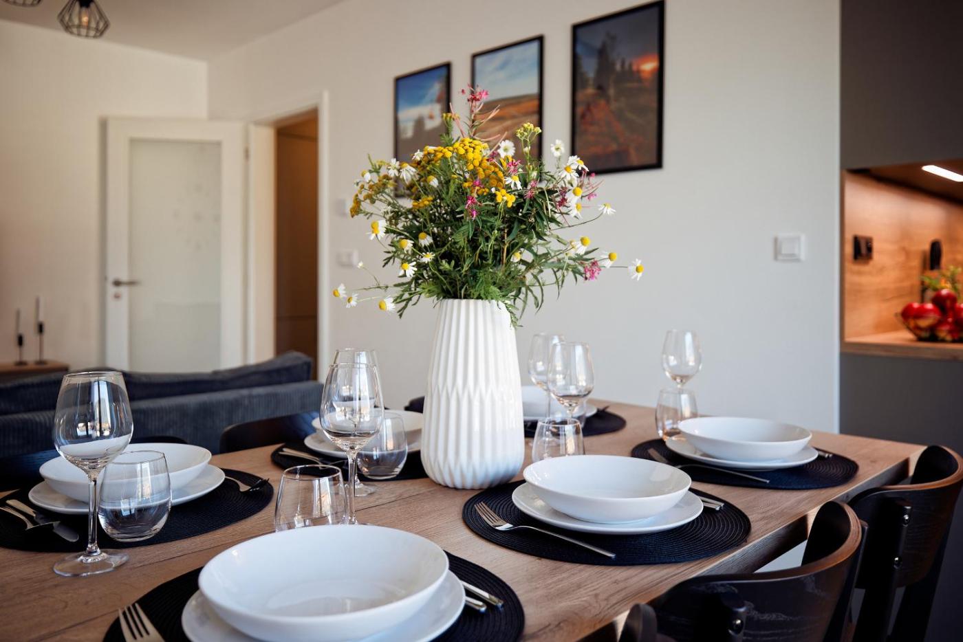 Two-Bedroom Apartment with Balcony. This spacious apartment comprises 1 living room, 2 separate bedrooms and 1 bathroom with a shower and a hairdryer. Meals can be prepared in the well-fitted kitchenette, which comes with a stovetop, a refrigerator, a dishwasher and kitchenware. Featuring a balcony, this apartment also provides a tea and coffee maker, a wardrobe and a flat-screen TV. The unit offers 4 beds.