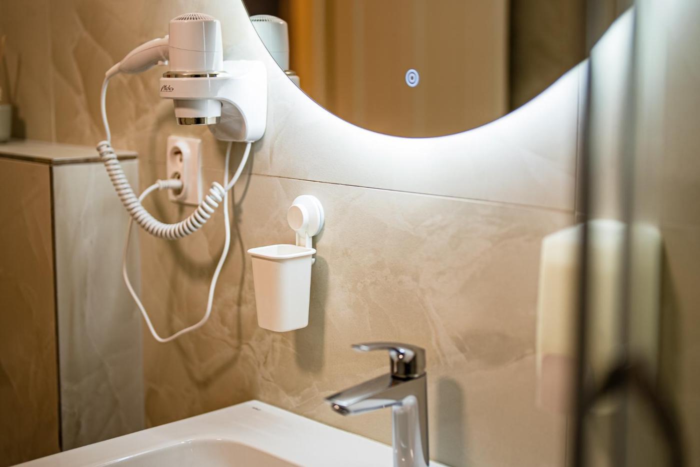 Standard Double Room. The double room provides a carpeted floor, heating, as well as a private bathroom featuring a shower and a hairdryer. The double room features tiled floors, a seating area with a flat-screen TV with cable channels, air conditioning, a tea and coffee maker, as well as a wardrobe. The unit offers 1 bed. ;
