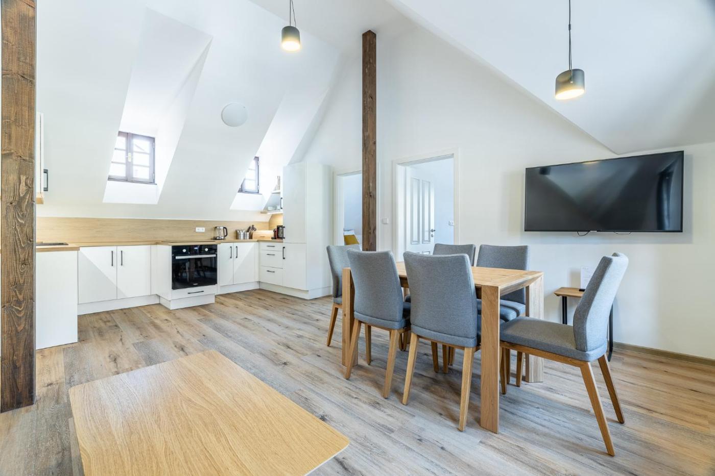 Offeringcourtyard views, Residence Wurmfeld - Rodinný apartmán s 3 ložnicemi is an accommodationin Český Krumlov, 26 km from Přemysl Otakar II Square and 300 metres from Main Square in Český Krumlov. Free WiFi is offered throughout the property and private parking is available on site. The property is 200 metres from the city centre and 700 metres from Český Krumlov Castle.