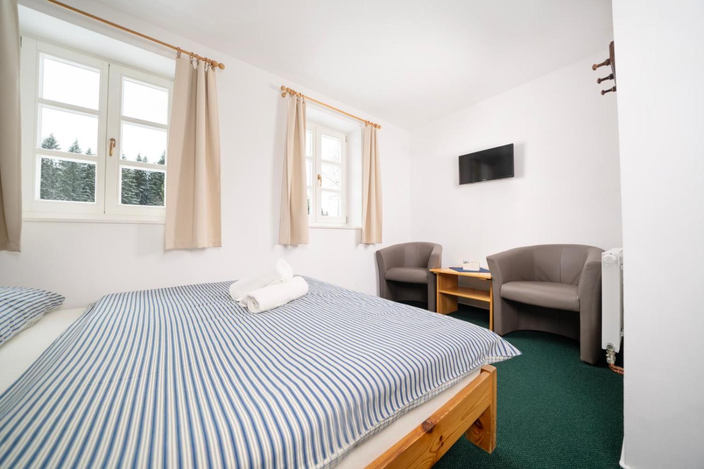 Set in Stachy in the South Bohemia region, Penzion U Churáňů offers accommodation with access to a sauna. This guest house provides a garden, a bar, as well as a shared lounge. There is a sun terrace and guests can make use of free WiFi and free private parking.