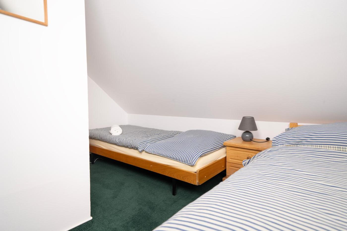 Triple Room. The triple room provides a wardrobe and heating, as well as a private bathroom featuring a shower. The unit offers 2 beds. ;